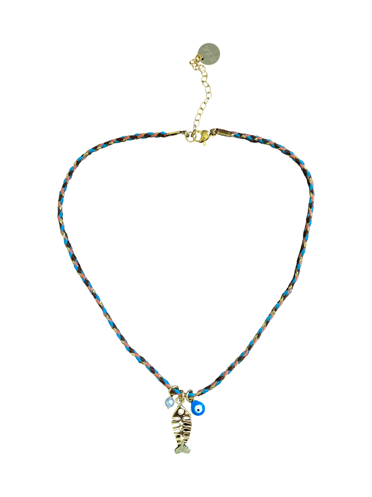 * String fish necklace with tiny evil eye and 100% genuine tiny pearl pendant.